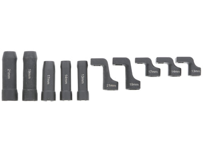 Includes (Qty): (2) 13mm socket 3/8" drive, (2) 14mm socket 3/8" drive, (2) 17mm socket 3/8" drive, (2) 19mm socket 1/2" drive, (1) 21mm socket 1/2" drive.