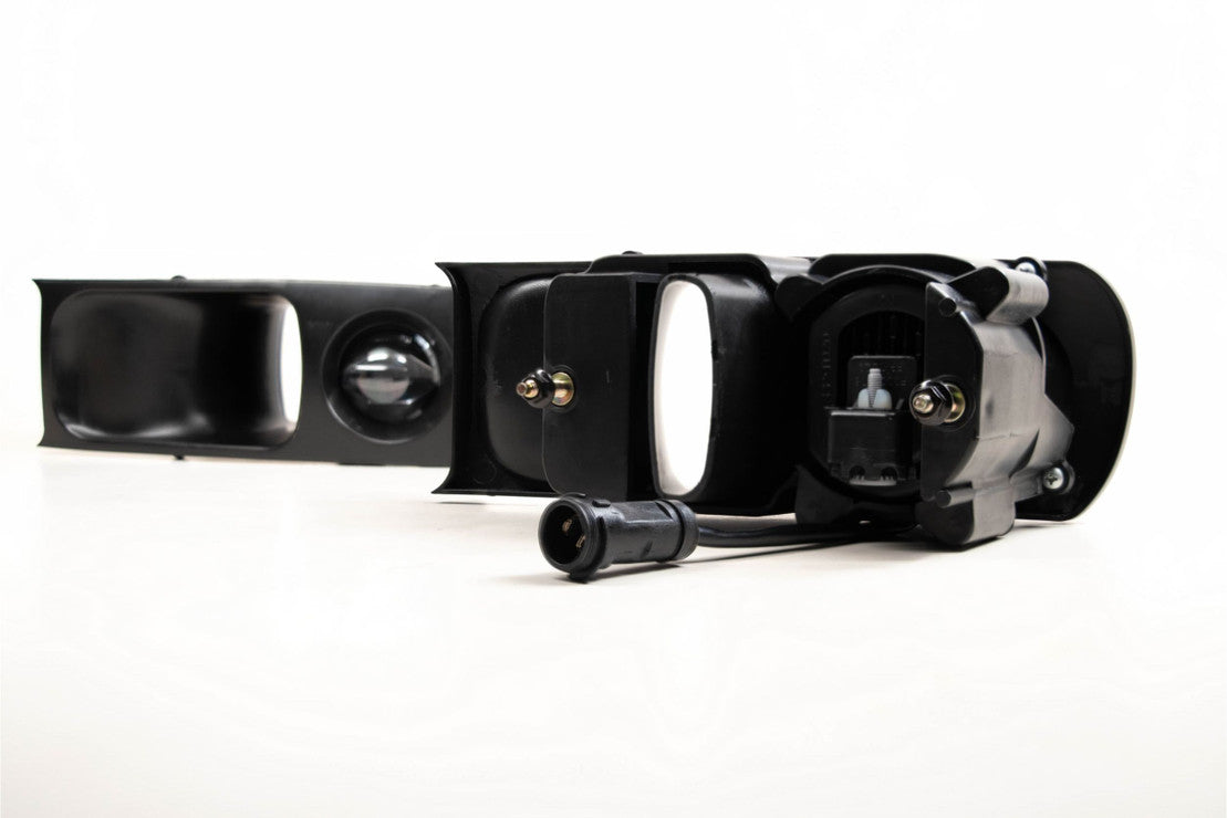 LIGHT OUTPUT: Powered by three Philips Luxeon 3800K LED's that produce around 1200 raw lumens per side. The projector-based optics concentrate a total of 2400 lumens into a beam that's super wide and perfectly distributed for use as a fog light. specifically selected the LEDs for the 964 fog lights to produce a warmer colored light output relative to the rest of their range, so that they have a more period-correct appearance on the 911. They also meet or exceed all SAE, DOT, and ECE regulations.