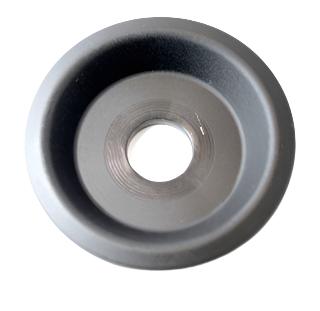 Porsche Round protector plate on door panel behind locking knob. Black, fits 911 and 930 (1978 - 1989).
