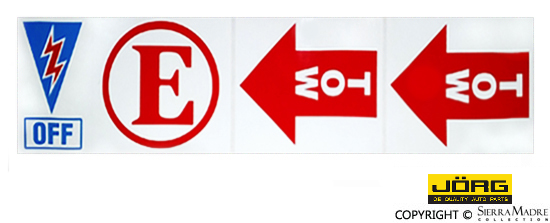 Porsche JÖRG SCCA racing safety decal kit. This decal set includes 4 individual stickers that are made of white vinyl with a white background.
